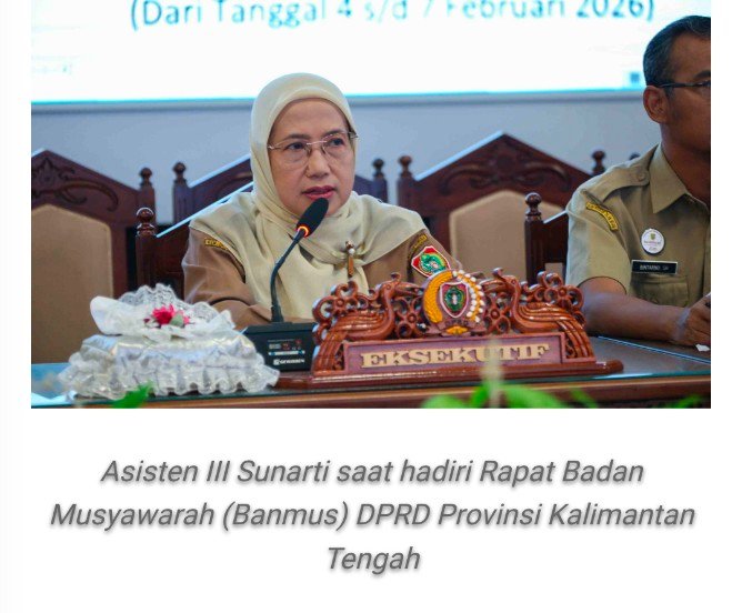 Asisten Administrasi Umum (Asisten III) Sunarti menghadiri Rapat Badan Musyawarah (Banmus) DPRD Provinsi Kalimantan Tengah bersama Tim Pemerintah Provinsi Kalimantan Tengah yang berlangsung di Ruang Rapat Gabungan DPRD Provinsi Kalimantan Tengah, Senin (2/2/2026).