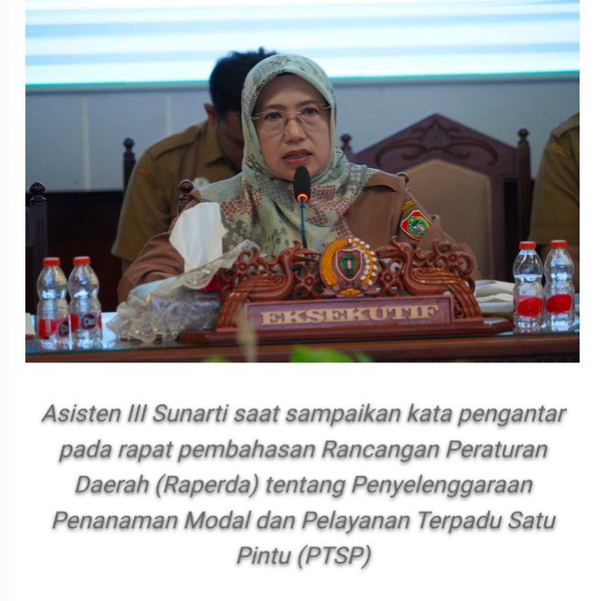 Asisten III Sunarti menyampaikan bahwa penyusunan Raperda tentang Penyelenggaraan Penanaman Modal dan PTSP merupakan bentuk kebijakan daerah dalam merespons perkembangan regulasi nasional, khususnya di bidang penanaman modal dan perizinan berusaha berbasis risiko.